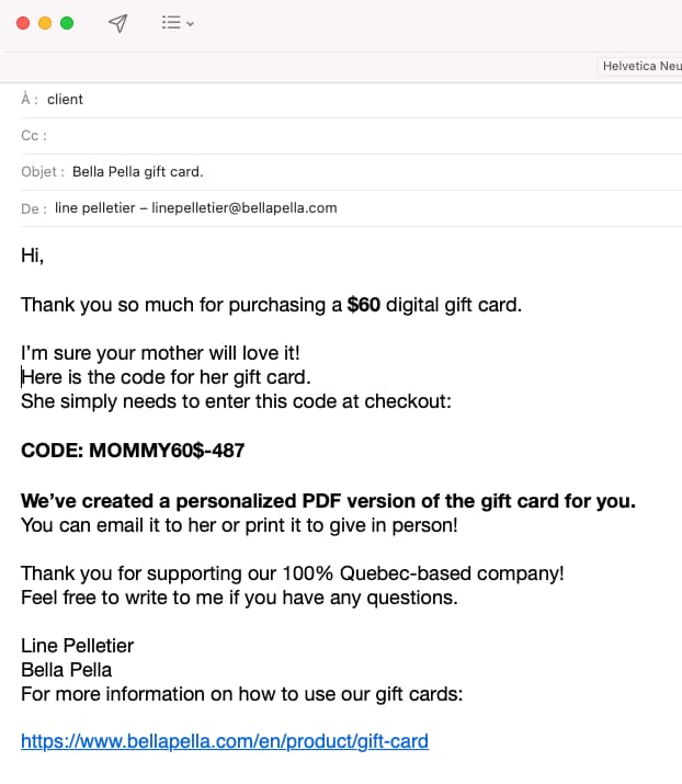 - You will receive an email containing a code and a personalized PDF gift card. You can then send it by email or print it to offer in person. It’s as simple as that!